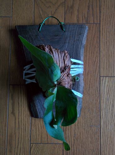 ビカクシダの成長記。 最近勢い良く成長していたエレマリアが子株を出してくれた! 向かって右側の小さい貯水葉が出てきた子株。 こんな焼板すれすれのところから出てきてどうするんだろうか。 ここから出てきてくれるということは根が水苔全体に回ってるん…