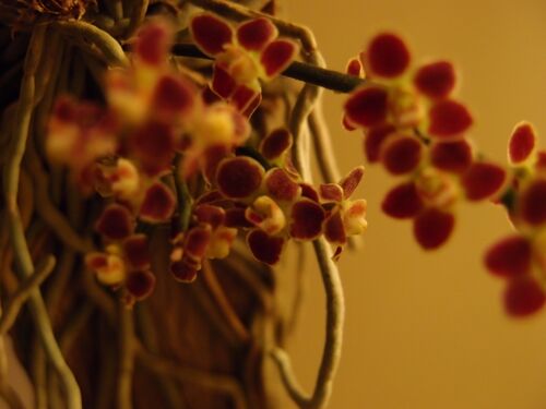 今回は キロスキスタ ルニフェラ(Chiloschista lunifera) 家にいるときはほぼ毎日、適当に霧吹きしてるだけの雑な管理だったけど、花芽が上がってきた。 乾燥には弱いはずだけど、この湿度10%の部屋で耐えて花芽まで出すんだから、かなりの強健種なんじゃな…