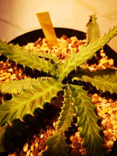 こんにちは。 今回はユーフォルビア・ステラータこと飛竜について。 前回記事はここらへん。 yoshida-lab.hatenablog.com yoshida-lab.hatenablog.com まずは現在のようすがこちら。 成長点かな次々と葉が出てきている。 葉は青々としていて、模様も綺麗。 …